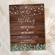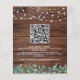 Invitations amis et famille à votre mariage avec ces élégants et rustiques bois avec des lampes à cordes et des cartes de faire-part de mariage de verdure eucalyptus. Ces invitations uniques au mariage campagnard rustique comprennent d'élégantes lampes à cordes blanches sur le bois de grange avec un design botanique de verdure avec le code qr du site web mariage pour... Personnalisez ces invitations de mariage rustiques avec les noms, la date du mariage et l'emplacement. Découvrez notre collection mariage pour des invitations uniques à des mariages, des albums photos mariages, des livres d'invités, des cadeaux de fête, et plus encore ! DROIT D'AUTEUR © 2020 Judy Burrows, Black Dog Art - Tous droits réservés. Invitation de code QR du Mariage des lumières de chaînes rustiques du budget