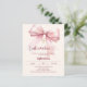 Un fond de couleur crème douce, orné d'un grand noeud rose et d'une croix dorée. Personnalisez et ajoutez un nom et des détails.