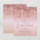 Une alternative en papier économique. Les enveloppes sont une option supplémentaire. De fausses gouttes de Glitter Glam en bordure de rose doré bordent le bord supérieur des deux côtés. « Bridal Shower » est écrit dans un script moderne et élégant dans une teinte coordonnée et le reste du texte peut être facilement personnalisé.