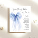 Élégante invitation à la douche nuptiale budget avec une aquarelle d'un grand arc de coquette bleu et "quelque chose de bleu avant moi" dans un script chic. Ce papier semi-brillant budgétaire est similaire en poids au papier photo. Une version plus épaisse 5x7 traditionnelle de stock de carte est également disponible (message nous pour le lien).