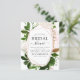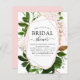 Invitations de fiançailles de mariage de printemps géométrique rose poudré - verdure botanique et or rose - sur fond blanc - comprend une typographie de script élégante et moderne avec des feuilles botaniques et de la verdure pour la célébration de la future mariée.