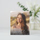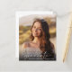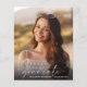 Élégante invitation à la fête de remise des diplômes avec la photo de la grad superposée avec "gradué" dans un script blanc moderne et leur nom et année de classe dans une simple typographie blanche. Au contraire, ajoutez les détails de la fête principale.