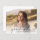 Élégante invitation à la fête de remise des diplômes, avec la photo du diplômé superposée avec "diplômé" dans un script moderne et leur nom et année de classe dans la simple typographie. Au verso, ajoutez les détails de la fête de remise de diplômes.