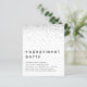 Un rapport qualité-prix BUDGET alternative sur une taille plus petite 4,5 x 5,6" semi-brillant poids 110lbs, qui est d'une épaisseur similaire à une carte postale (cependant ne convient pas à l'utilisation comme carte postale.) VEUILLEZ NOTER qu'il y a UN invitation par feuille. Invitation de la partie d'engagement de Parties scintillant argent.L'en-tête est grand en minuscule élégant avec les détails en dessous. Beaucoup d'espace blanc au sommet pour une ambiance contemporaine ! Personnalisez facilement le texte à vos propres détails.