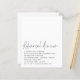 Budget Script Black White Rehearsal Dîner Un prix budgété PETIT 4,5" x 5,6" alternative. Disponible dans un STOCK SEMI GLOSS 110 lb CARD ). L'en-tête est dans un élégant style d'écriture avec les détails sous. Beaucoup d'espace blanc au sommet pour une ambiance contemporaine ! Personnalisez facilement vos informations.