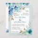 Invitation de mariage à fleurs aquarelles bleues et florales vert menthe BUDGET. Elle présente des bouquets de fleurs dans des tons bleus et verts menthe dans les coins tandis que votre texte est placé dans un cadre blanc avec une bordure. Le dos comprend des guirlandes florales sur les parties supérieure et inférieure.