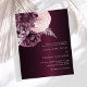 Un fond bordeaux profond décoré de fleurs bordeaux et roses, de fleurs et de feuillage faux argent. Personnalisez et ajoutez vos noms et les détails du mariage. 1 feuille = 1 invite imprimé bord à bord.