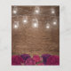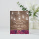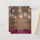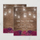 Cartes d'invitation de mariage rustiques et champêtres à petit budget avec un fond en bois, fleurs de marsala rouge burgundy, pots Mason avec guirlandes lumineuses et un modèle de mariage élégant et modifiable.