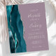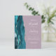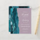 Le bord gauche de cette élégante invitation de mariage moderne présente une bordure d'agate aquarelle bleu sarcelle garnie de paillettes argentées. Le texte personnalisable combine une écriture manuscrite blanche, des polices copperplate et italiques sur un fond mauve. Le verso présente un design d'agate assorti bleu sarcelle et argent.