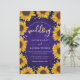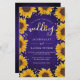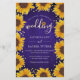 Cette invitation de mariage abordable présente de beaux tournesols peints à l'aquarelle sur un fond en bois bleu rustique rehaussé de points dorés. Cliquez sur le bouton personnaliser pour plus de flexibilité dans la modification du texte. Des variations de ce design, différents types de papier, ainsi que des produits coordonnés sont disponibles dans notre boutique, zazzle.com/store/doodlelulu. Contactez-nous si vous avez besoin de ce design appliqué à un produit spécifique pour créer votre propre article assorti unique ! Merci beaucoup d'avoir consulté un DoodleLulu par 2 june bugs design !