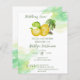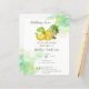 Invitation de baby shower budget aquarelle bébé dinosaure vert dans un œuf jaune. Thème vert, neutre, facile à assortir à la décoration.