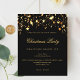 Une invitation pour une entreprise, compagnie fête de Noël. Arrière - plan noir classique. Décoré d'étoiles dorées. Personnalisez et ajoutez les détails. 1 feuille = 1 invite imprimé bord à bord.