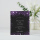 Un arrière - plan noir chic. Décoré de parties scintillant en faux violet foncé, brille. Personnalisez et ajoutez vos noms et les détails. Retour : arrière - plan noir et fausse parties scintillant.