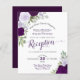 Ces invitations abordables et économiques sont conçues pour les invités qui sont conviés uniquement à la réception, et non à la cérémonie de mariage. Le design élégant présente des roses peintes à la main à l'aquarelle dans des nuances de pourpre, de lavande et de prune, avec une profusion de feuilles d'eucalyptus et de verdure. La typographie présente une calligraphie fantaisiste, et le dos est d'une couleur bordeaux marbré profond. Un moyen parfait de célébrer votre mariage sans dépenser une fortune en invitations.