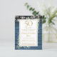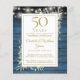 Présentant une délicate aquarelle de verdure de jardin campagnard et de jolies guirlandes lumineuses sur un fond de panneaux de bois bleu, cette invitation rustique chic peut être personnalisée avec vos informations de célébration d'anniversaire de 50 ans spéciales. Conçue par Thisisnotme©