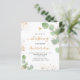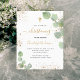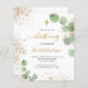 Un arrière - plan blanc décoré d'une végétation d'eucalyptus et d'une poussière de parties scintillant en faux or. Personnalisez et le nom des enfants et les détails de la cérémonie. Lettres noires et dorées. Non sexiste. Dos : arrière - plan blanc avec poussière de parties scintillant en faux or.