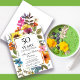 Un cadre blanc simple et moderne permet aux fleur sauvage de s'y plonger dans une élégance décontractée. Un tournesol jaune est rejoint par des fleurs sauvages violets, oranges et bleus. L'arrière est tout aussi joli que l'avant avec un grand bouquet de fleurs sauvages d'été coordonnés. Ce faire-part de mariage fait partie de la collection Summer Fleur sauvage.