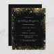 Une invitation de mariage moderne et élégante. Arrière - plan noir décoré de parties scintillant faux or scintillent. Personnalisez et ajoutez vos noms et les détails du mariage. Lettres de couleur blanche. 1 feuille = 1 invite imprimé bord à bord.