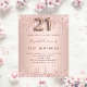 Une invitation moderne, élégante et glamour pour une fête de 21e anniversaire. Un fond métallisé rose gold faux avec un effet de dégoulinade de paillettes rose gold élégant. Le nom est écrit avec un style de lettrage main moderne de couleur rose gold foncé. Personnalisez et ajoutez vos détails de fête. Le numéro 21 est écrit avec une police de caractères de style ballon, script.