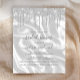 Un design chic et moderne avec une soie blanche ou un arrière - plan satiné avec une bordure supérieure de parties scintillant argent gouttes. Les mots "douche nuptiale" et le nom de la future mariée apparaissent dans un script de calligraphie en minuscules avec des swashes décoratifs au début et à la fin, avec le texte restant dans la police sans serif. La bordure de goutte blanche en arrière - plan satiné et en parties scintillant argentée est répétée à l'envers. (Pour garder les swashes, ne remplacer que les lettres du nom de la future mariée, laissant les symboles en place.)