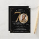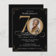 Invitation pour les 70 ans avec photo et budget noir or. Une invitation élégamment conçue pour une célébration d'anniversaire spéciale, comportant une photo personnalisée de la personne qui fête son anniversaire et une calligraphie script avec des éléments de flourish vintage. Assez simple pour s'adapter à une variété de thèmes et de couleurs !