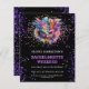 Itinéraire personnalisable pour un week-end de célibataire à la Nouvelle-Orléans sur papier. Avec un masque de Mardi Gras coloré et une impression à paillettes sur fond noir. Au verso, un modèle pour personnaliser avec vos propres détails d'itinéraire.