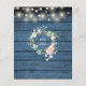 Caractérisée par une délicate guirlande de roses florales à l'aquarelle et de jolies guirlandes lumineuses sur un fond de planches de bois bleu, cette invitation d'anniversaire de mariage rustique chic peut être personnalisée avec vos informations spéciales d'anniversaire. Le verso présente une guirlande florale assortie encadrant vos dates d'anniversaire en texte élégant sur un fond de planches de bois. Conçue par Thisisnotme©