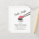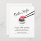 Invitations De Soirée Sushi. Ce design moderne peut être utilisé pour les anniversaires, les proms, les douches nuptiales, les soirées de ménage ou toute autre fête que vous voudriez. L'Invitation est créée avec un arrière - plan blanc et un morceau de sushi trempant dans la sauce soja, à l'arrière il y a une assiette de sushi avec différents morceaux de sushi sur l'assiette. D'autres articles de fête sont disponibles à la boutique Metro-Events Zazzle et à Metro-Event.com.