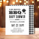 Préparez-vous à accueillir un peu de joie avec notre invitation de baby shower barbecue abordable avec typographie noire chic et en vichy noir inverse. Il est très facile de personnaliser avec vos propres détails, ce qui en fait une invitation spéciale et unique pour votre baby shower.