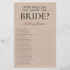 Cette charmante feuille de jeu de baby shower « Comment connaissez-vous bien la mariée ? » est simple et charmante - parfaite pour n'importe quelle fête. Ce jeu amusant et facile est sûr d'apporter beaucoup de rires à n'importe quelle fête de mariage. Il suffit de donner une feuille à chaque invité (n'oubliez pas les stylos) et laissez les festivités commencer ! Vous serez étonné de voir combien de personnes connaissent certaines des réponses.