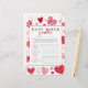 Créez un peu de plaisir à un baby shower avec ce jeu de course de mots à thème "amoureuse" ! Caractéristiques design, assortiment de coeurs aquarelles dans les tons rouges. Les réponses sont disponibles au contraire. Pour une personnalisation plus avancée de ce design, il suffit de sélectionner le lien "Personnaliser plus loin" après la personnalisation !