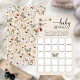Jeu de Bingo pour bébé. Vous cherchez une ambiance bohème unique pour impressionner vos amis et votre famille ? Chic et élégant, cette belle palette de couleurs de beige, marron, rouille, terre cuite et orange brûlé est la tendance de cette année pour les baby showers. L'herbe sèche rustique, les feuilles et les fleurs sauvages vintage sont des détails époustouflants à ajouter à votre baby shower moderne bohème-chic. Tous les articles de papeterie sont conçus par Painted Paperie.