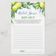 Jeu de Fête des mariées double face aux citrons en fleurs. Profitez de votre douche nuptiale avec ces jeux amusants. Personnalisez avec la mariée le nom et la date de la douche. Pour plus de personnalisation, cliquez sur le lien "customiser plus loin". Si vous avez besoin d'aide, contactez-moi s'il vous plaît.