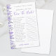 Elégant Aquarelle Lavande Fête des mariées florale Comment bien connaissez-vous le jeu de mariée? Une activité ludique et interactive où les invités répondent aux questions pour voir qui connaît le mieux la mariée. C’est une façon douce de célébrer la future mariée tout en faisant divertir et fidéliser tout le monde. Le design se compose d'un jardin lilas et lavande aquarellé avec des tiges dans les tons violets et feuilles verts frais. Les fleurs coulent gracieusement sur le côté gauche, donnant à la carte de jeu une touche moderne et fantaisiste. Un mélange de polices serif classiques et d'élégantes typographies de script rend le jeu élégant mais facile à lire. Entièrement personnalisable, vous pouvez modifier les questions, les couleurs de police et l'arrière - plan pour correspondre à votre thème de douche nuptiale. Cette activité ajoute un détail charmant et personnel à toute célébration.