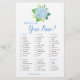 Cette carte de jeu de douche nuptiale est Qu'y a-t-il dans votre sac à main? Le design présente des fleurs hydrangées bleues aquarelles et un design géométrique en faux or sur le dos. Personnalisez le dos des cartes avec le nom de la mariée. Produits correspondants disponibles.