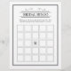 Cette conception classique de jeux de Fête des mariées de Bingo à deux faces donne le ton d'un événement sophistiqué et élégant pour le printemps, l'été, l'automne ou l'hiver. Le noir et blanc intemporel offre des détails polis foncés et contrastés de bordures chic et de style vintage - un look épuré qui peut vraiment présenter un look moderne minimaliste tout aussi facilement qu'un événement de luxe formel et embelli. Ce design imbibe une couture cravate noire/petite robe noire esthétique à votre journée spéciale.