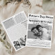 Faites passer papa comme une nouvelle avec cette carte de Fête des pères unique et personnalisable conçue comme un journal spécial. La première page le déclare fièrement "Meilleur Père du Monde" avec son nom et une photo qui lui est chère, tandis que la partie arrière présente des faits amusants sur lui, les raisons pour lesquelles "Papa est le Meilleur", et un puzzle de recherche de mots engageant. Ce design créatif et personnalisé transforme une carte simple en un hommage mémorable et divertissant juste pour lui.