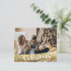 Une simple carte photo de Noël décorée de flocons blancs et d'un swash en or. Ajoutez votre photo de famille ou d'animal de compagnie préférée et customisez le texte en quelques clics seulement.