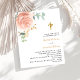 Pour la confirmation de 2 filles, soeurs. Un arrière - plan blanc décoré de verdure d'eucalyptus, de feuilles dorés et d'une fleur d'or rose. Personnalisez et les noms des filles et les détails. Lettres noires et dorées. 1 feuille = 1 invite imprimé bord à bord.