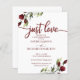 Calligraphie chic, invitation décontractée à un mariage à fleurs rouges. Facile à personnaliser avec vos détails.