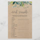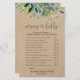 Ce jeu de feuillage kraft "maman ou papa" est parfait pour un baby shower rustique. Le devant de la carte de jeu comporte "maman ou papa ?", et le dos de la carte contient "baby word scramble". Le design présente un cadre de feuilles verts et de plantes botaniques vertes sur un arrière - plan en papier imitation kraft. Personnalisez l'avant de la carte avec le nom de la mère à être et la date du baby shower. Vous pouvez personnaliser les questions du jeu en cliquant sur le bouton "personnaliser". BÉBÉ ÉCRAMBLE DE RÉPONSE CLÉ : 1.Bassinet 2.Bassinet 3.Bouteille 4.Crib 5.Pacifier 6.Changement de tableau 7.Brouillard 8.Poussette 9.Brouillard 10.Bonnet 11.Ensemble 12.Formule 13.Haut fauteuil 14.Mobile 15.Thermomètre NOTE : imprimé sur papier kraft réel. C'est un graphisme de haute qualité fait pour ressembler à du papier kraft.
