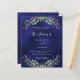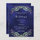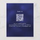 Un arrière - plan bleu marine décoré de fleurs de lavande et de verdure d'eucalyptus. La couleur bleue est inégale. Personnalisez et vos noms et détails. Retour : ajoutez l'url de votre site Web mariage au code QR pour plus de détails et/ou RSVP. 1 feuille = 1 invitation imprimé bord à bord.