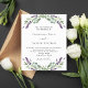 Un arrière - plan blanc décoré de fleurs de lavande et de verdure d'eucalyptus. Personnalisez et vos noms et détails. 1 feuille = 1 invite imprimé bord à bord.