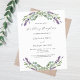 Un arrière - plan blanc décoré de fleurs de lavande et de verdure d'eucalyptus. Personnalisez et vos noms et détails. 1 feuille = 1 invite imprimé bord à bord.