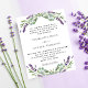 Un arrière - plan blanc décoré de fleurs de lavande et de verdure d'eucalyptus. Personnalisez et vos noms et détails. 1 feuille = 1 invite imprimé bord à bord.