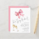 Budget Elle Tying The Knot Pink Bow Fête des mariées. Une alternative économique de 4,5 x 5,6 pouces plus petite sur un semi-brillant 110 livres d'épaisseur similaire à une carte postale. Il y a UN par feuille. L'en-tête principal est dans un élégant script set. Le reste du texte que vous pouvez facilement personnaliser.