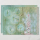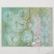 Spring Comes with Tulips est un papier artisanal d'imaginaire dans les tons verts et bleus avec quelques objets rouges pâles.
