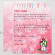 Ajoutez le nom de votre enfant à cette lettre personnalisée de Père Noël. Cute licorne de Noël avec arrière - plan de flocons de neige rouge et blanc.