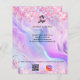 Personnalisez et ajoutez votre logo, nom, adresse, votre texte, votre propre code QR à votre compte instagram. Rosée, violette, bleue, fond holographique décoré de confettis.