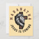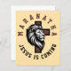 Maranatha Jésus arrive, cette conception chrétienne présente une tête de lion mâle avec une croix et un texte disant : "Maranatha, Jésus vient".